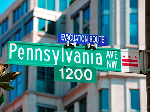 Post Cap and Cross Piece Application: Street name signs mounted on top of a post using a post cap and an adjustable angle cross-piece