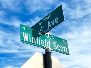 Round post cap securely holding extruded street name signs, with a cross piece